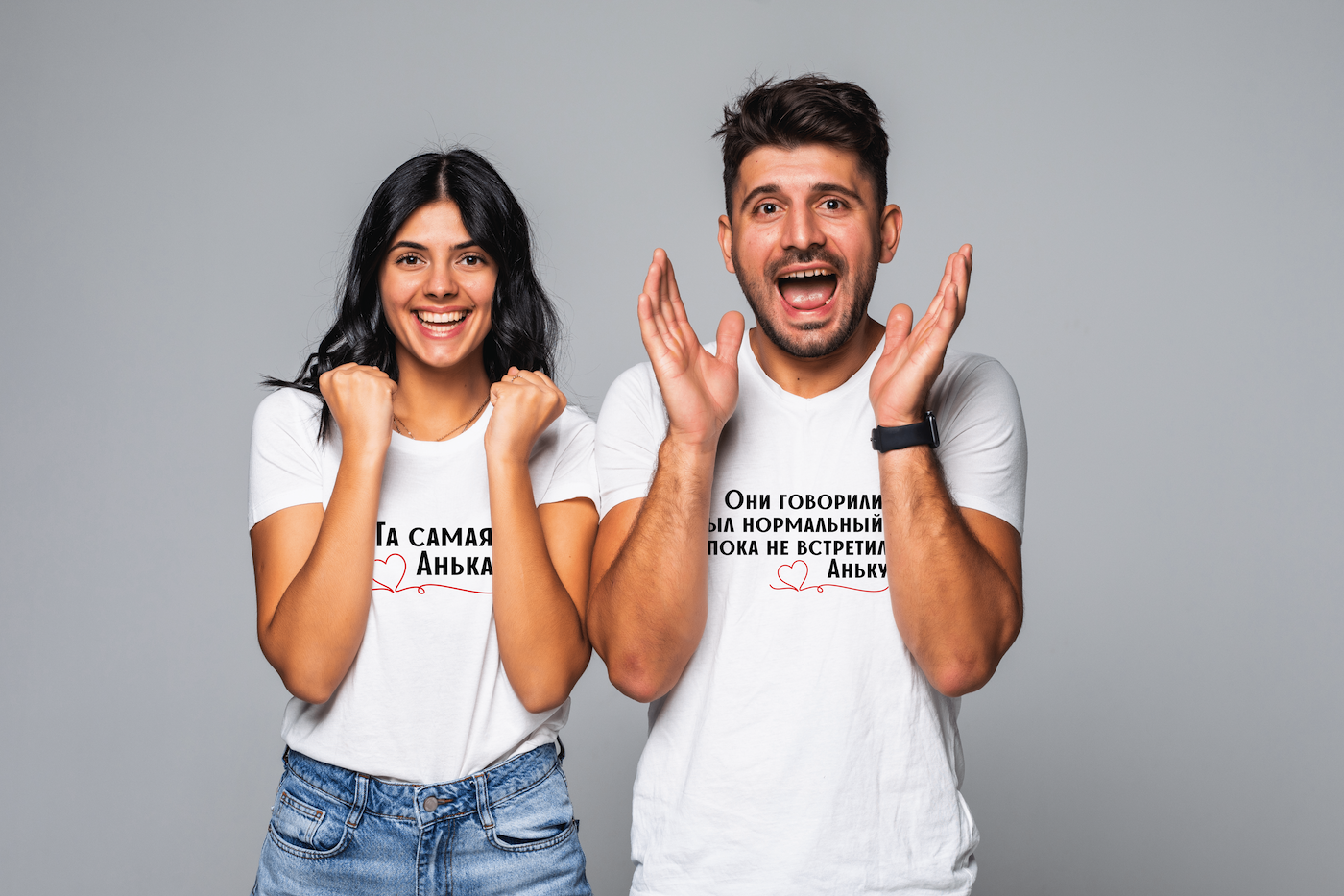 Herren T-Shirt personalisiert Partnerlook 1 “встретил Аньку” – Ein humorvolles Statement für besondere Persönlichkeiten