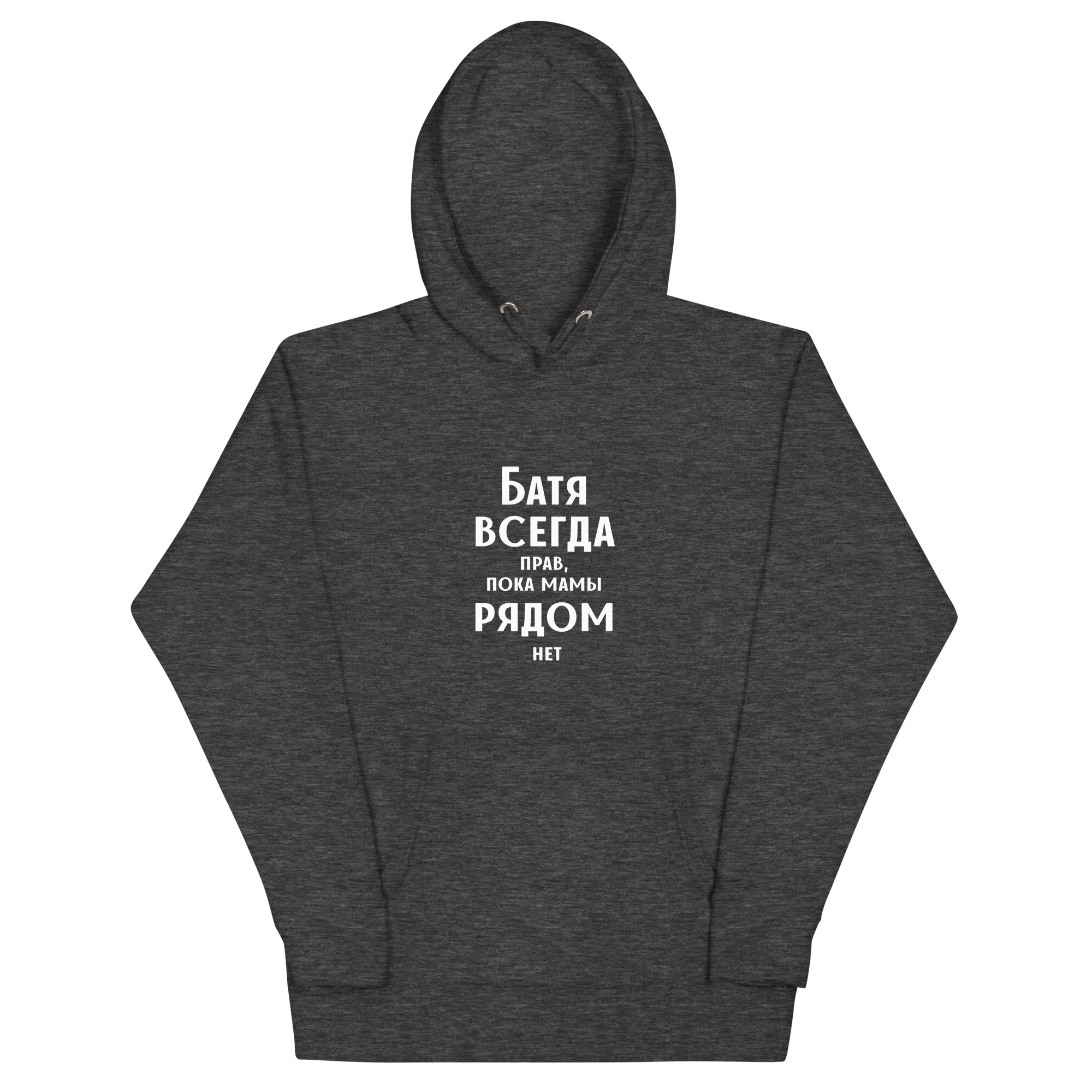 Kapuzenpullover “Батя всегда прав”: Witziger Hoodie mit dem Spruch “Батя всегда прав, пока мамы рядом нет” – perfekt für alle, die ihren Vater feiern!